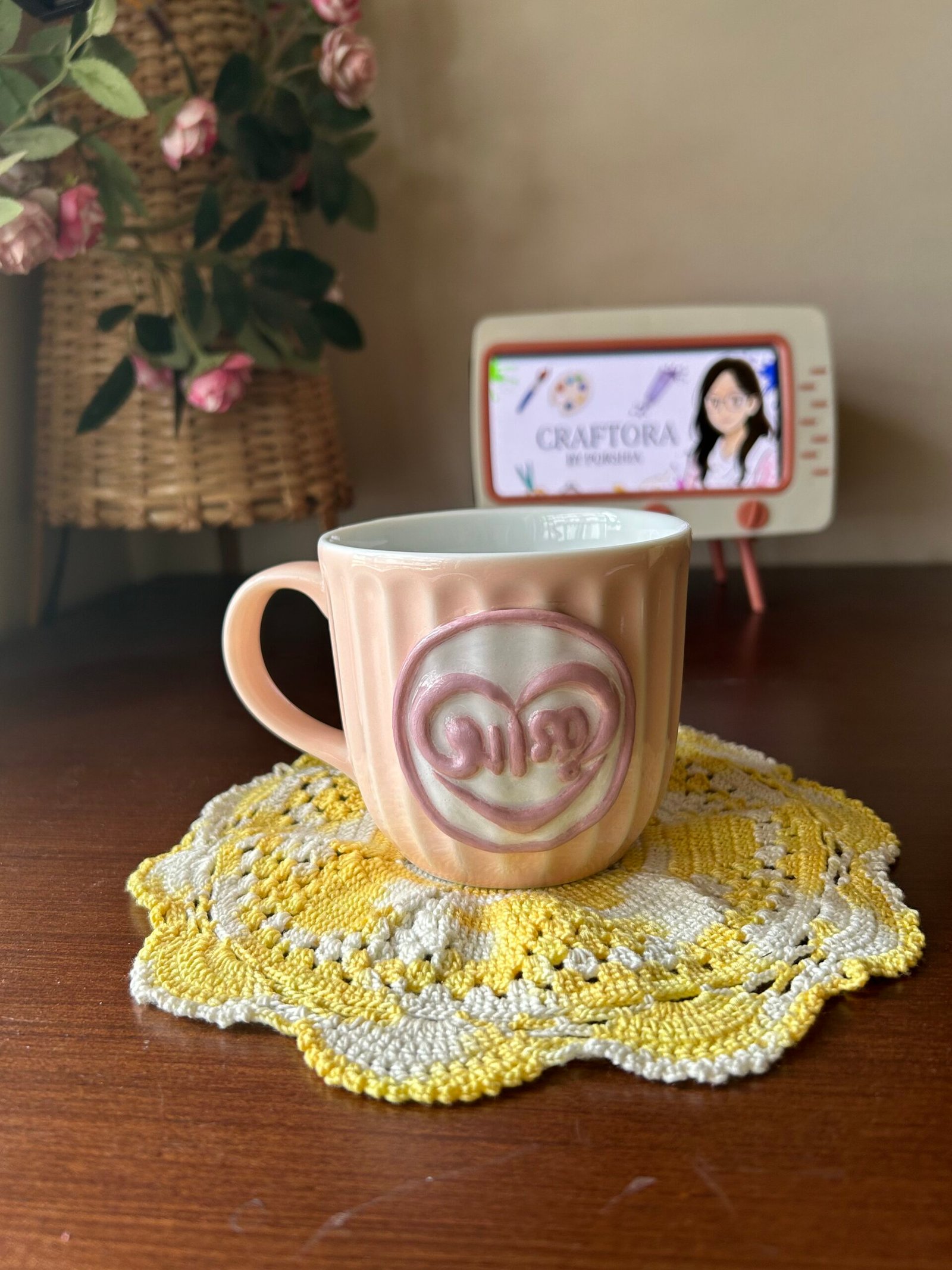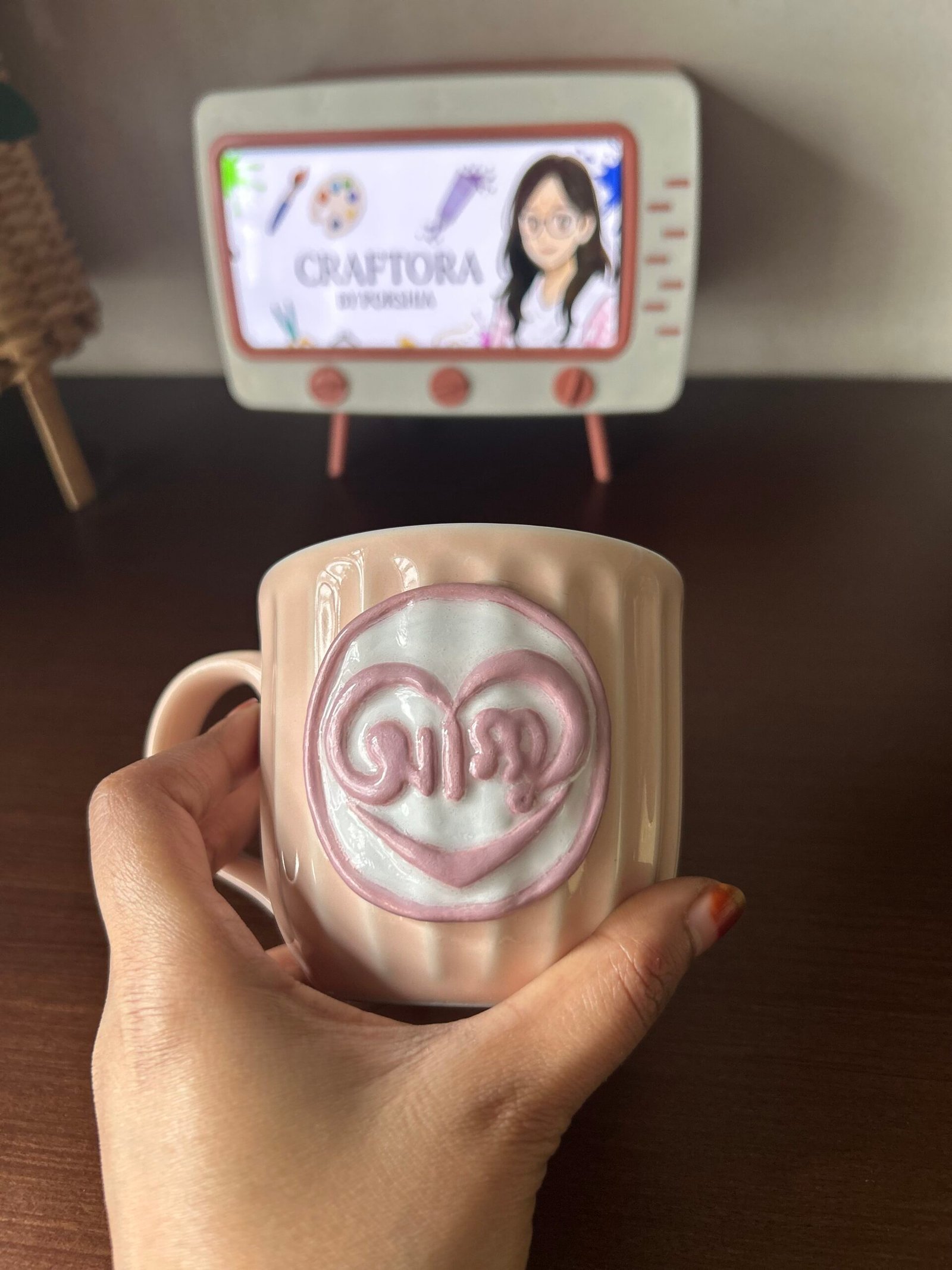 Honor the unconditional grace of motherhood with a piece of functional art designed to be as warm as her embrace. This bespoke ceramic mug features a meticulously hand-sculpted 3D emblem, crafted from premium clay and adorned with elegant Bangla calligraphy. Nestled within a blooming floral heart and shimmering with soft rose-gold accents, the word “Ammu” stands as a beautiful tribute to the woman who nurtures, guides, and loves without limit.