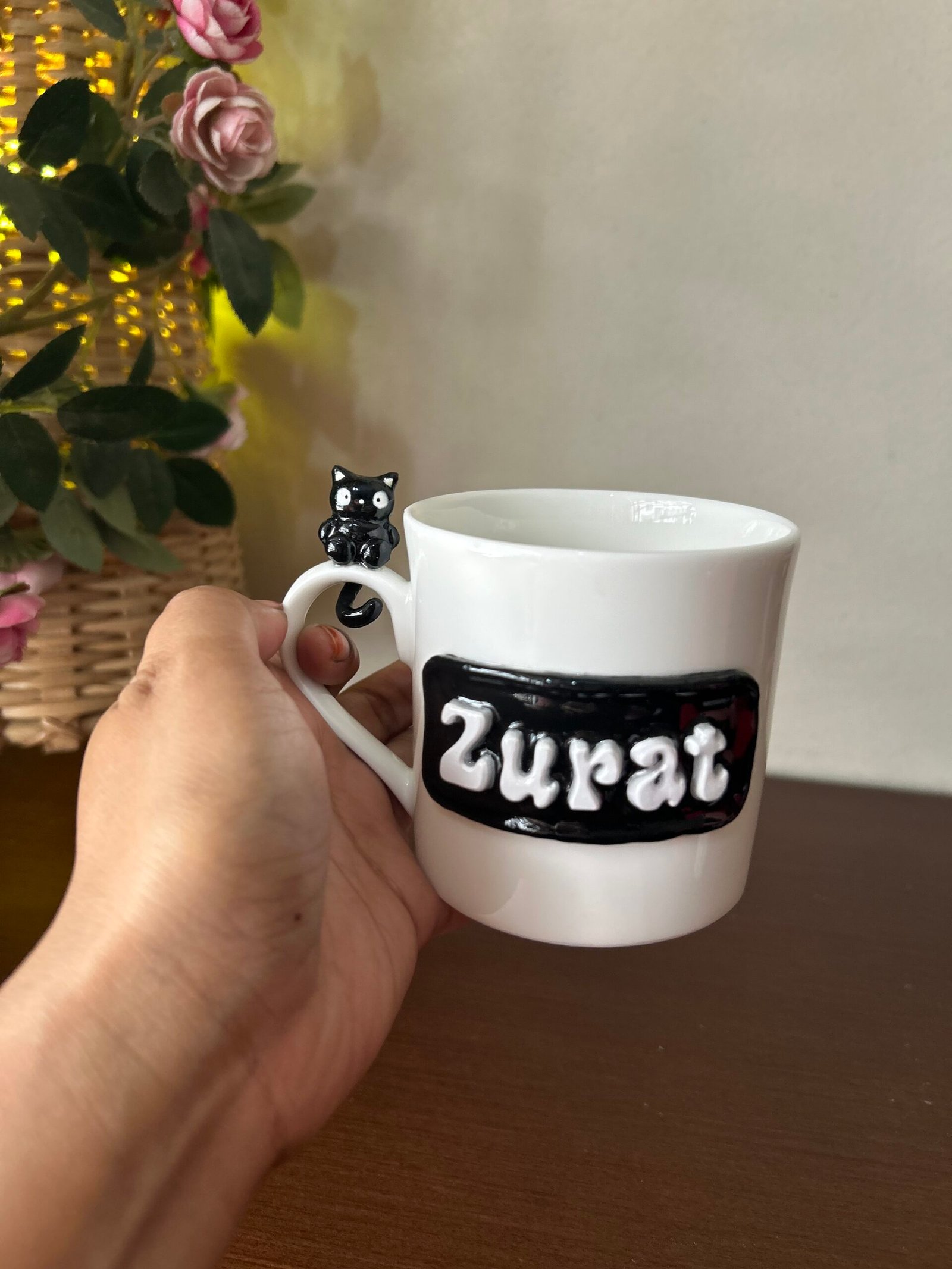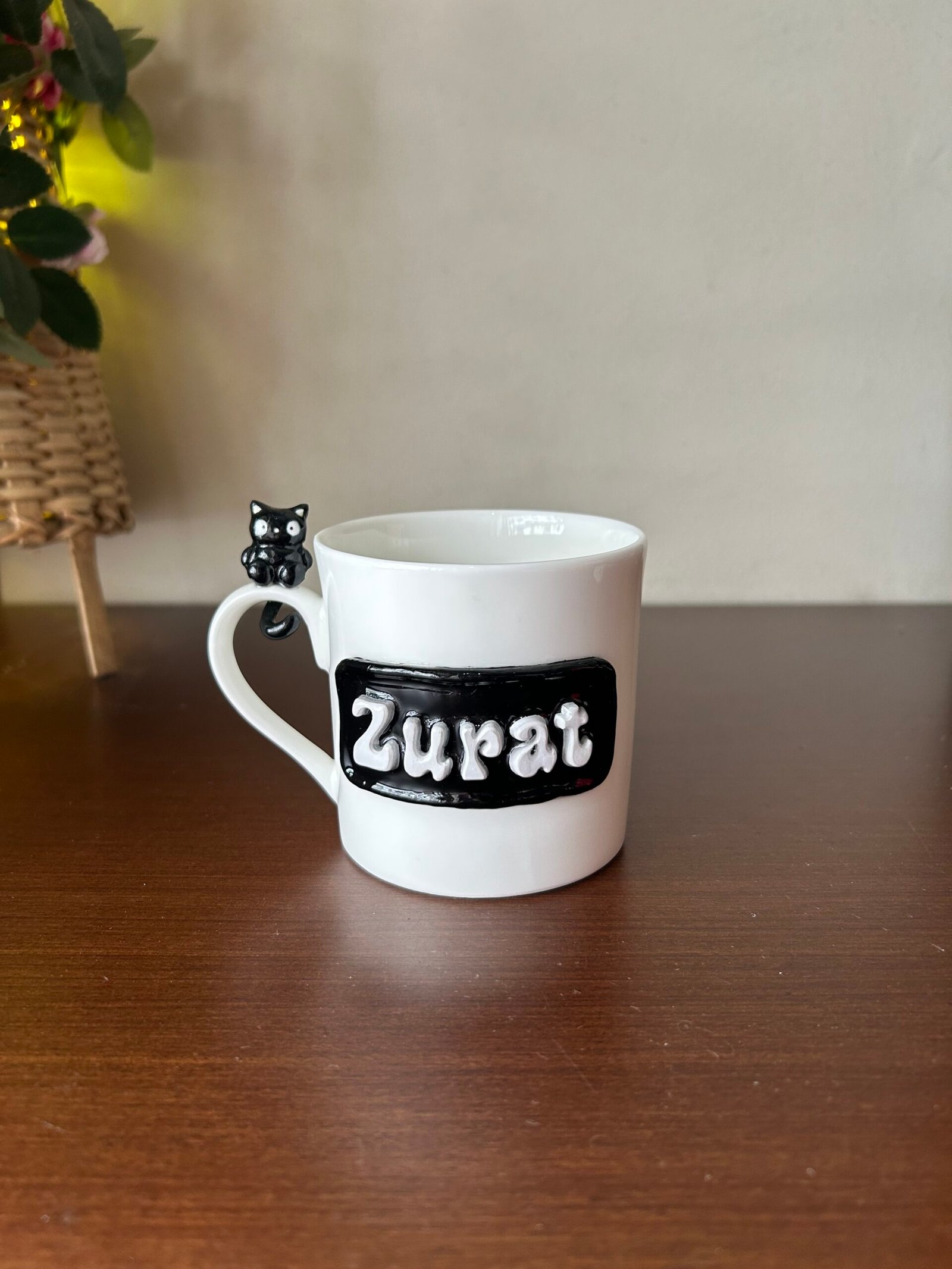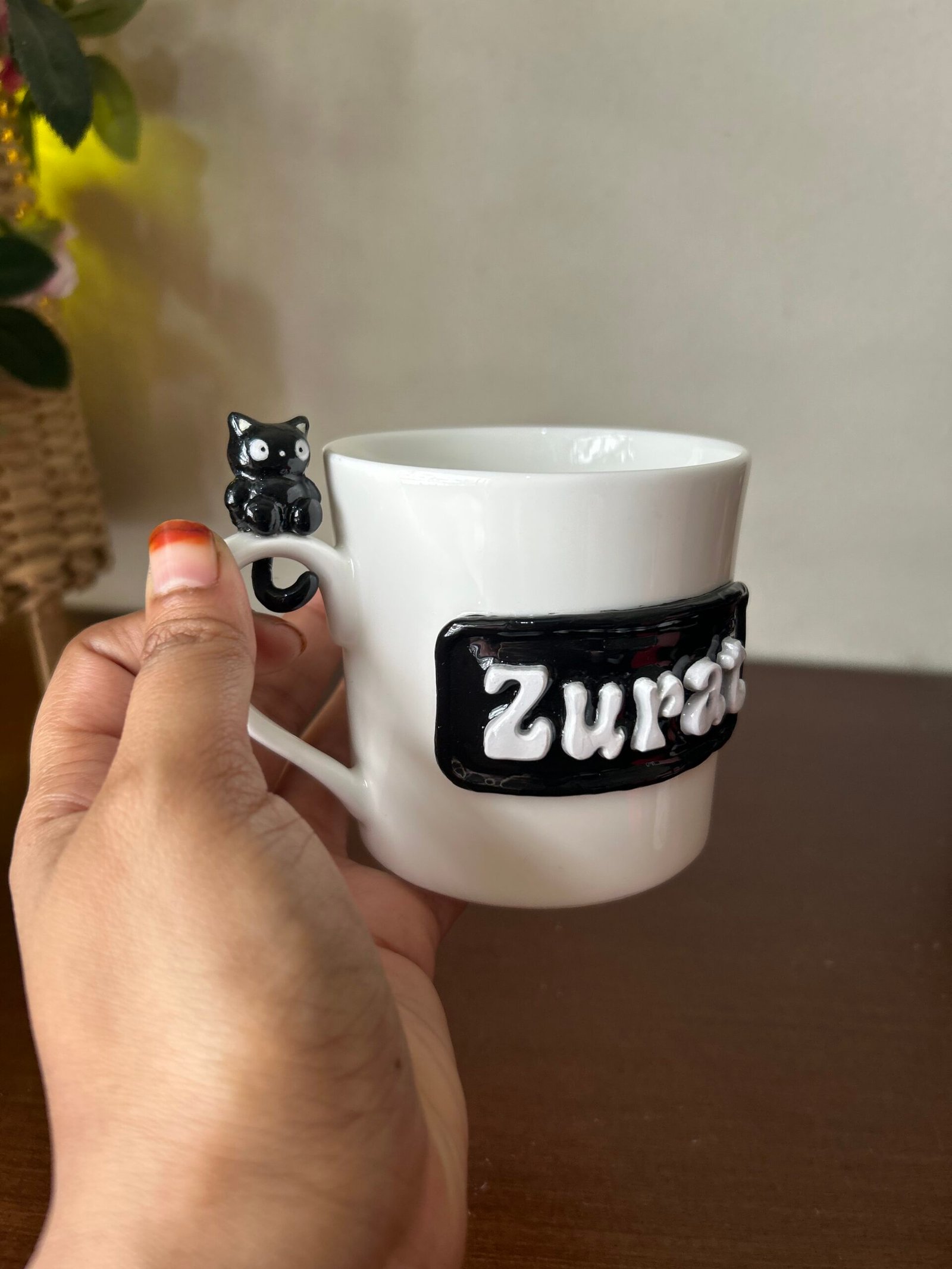 Your morning coffee just got a lot more “paws-itive”! This charming hand-sculpted mug features your very own Kitty Buddy—a sleek, curious black cat perched right on the handle to keep you company with every sip. With its wide-eyed expression and tiny curled tail, this little companion is here to turn your daily caffeine routine into a moment of pure joy. Whether you’re a lifelong cat lover or just someone who appreciates a touch of handmade magic, this mug brings a playful, cozy vibe to any desk or dining table.