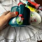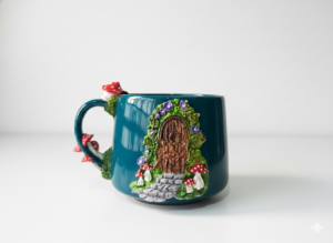 Step into a miniature world of wonder. The Secret Hearth Mug features an intricate, hand-sculpted 3D fairy door nestled within a vibrant arch of blooming wildflowers and mossy stone paths. Adorned with tiny, hand-painted fly agaric mushrooms—including a cheerful little guardian perched right on the handle—this mug transforms every sip into a journey through an enchanted woodland.